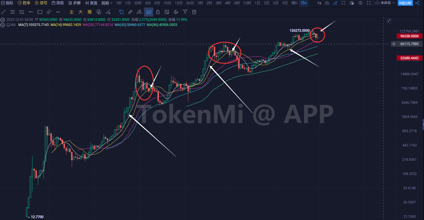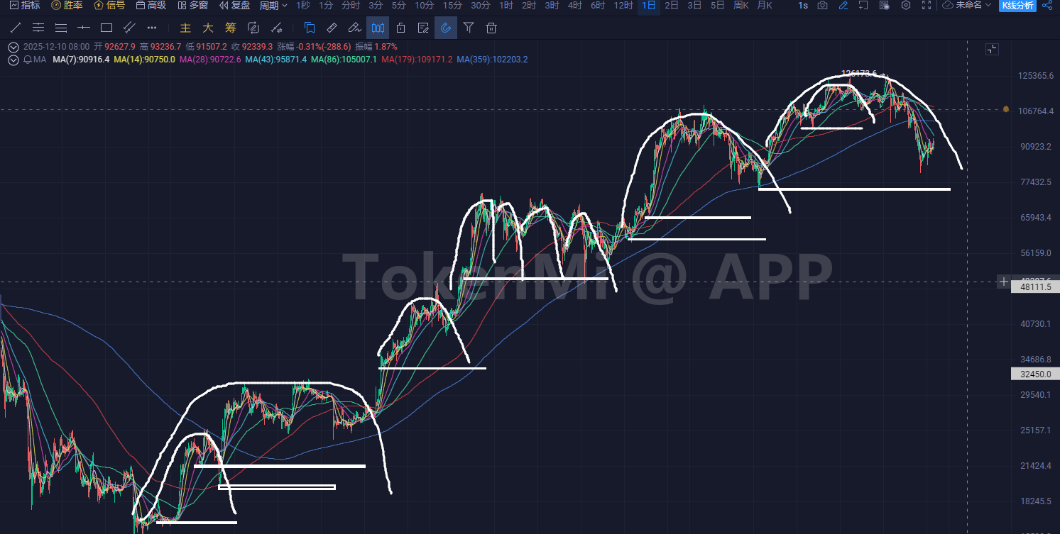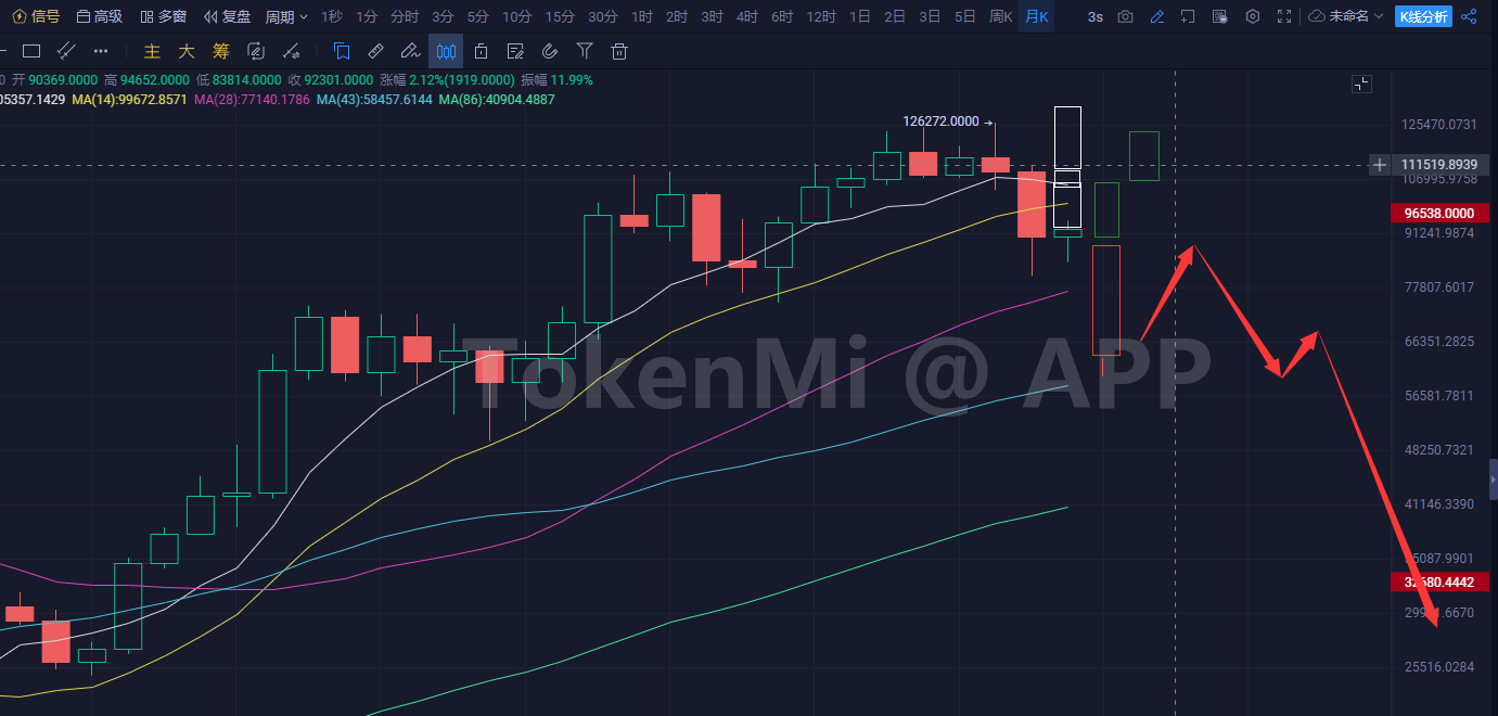月线级别玩法任选,如果熊市从目前高点计算,别说买到58000的大饼,甚至还有不到3万的大饼呢