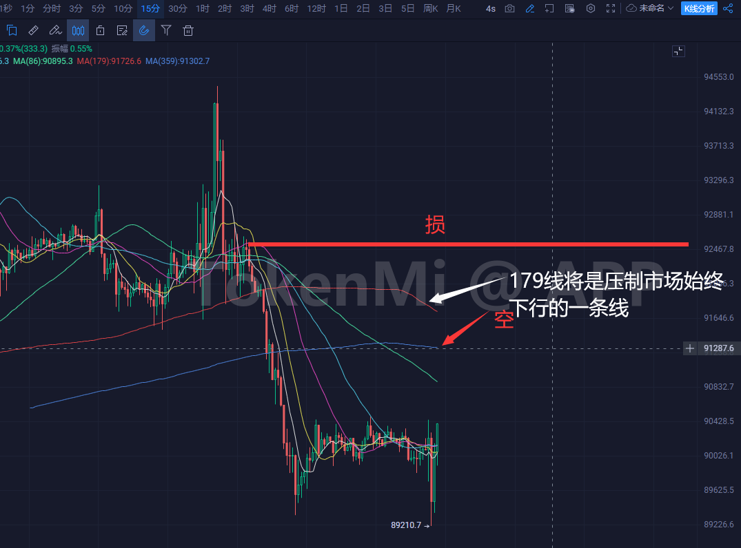 不知道,但以太不作妖不敢空,因为如果要下去,15分钟43线不会突破,突破就可能变成震荡或者下跌,我不去赌一腚跌